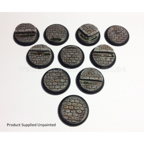 Set of 10 highly detailed 30mm round lipped model bases appropriate for a number of fantasy wargames. These lovely bases depict a sculpted cobbled stone surface and are ideal for incorporating that extra level of detail to your wargames miniatures, quickly and easily. Manufactured from a durable cast polyurethane resin, these bases are supplied unpainted and without flock. Painted examples shown to define detail and present the possible completed item. The bases are simple to paint with a superb level of detail and can be readily mixed with bases from many other manufacturers to make a unique army.